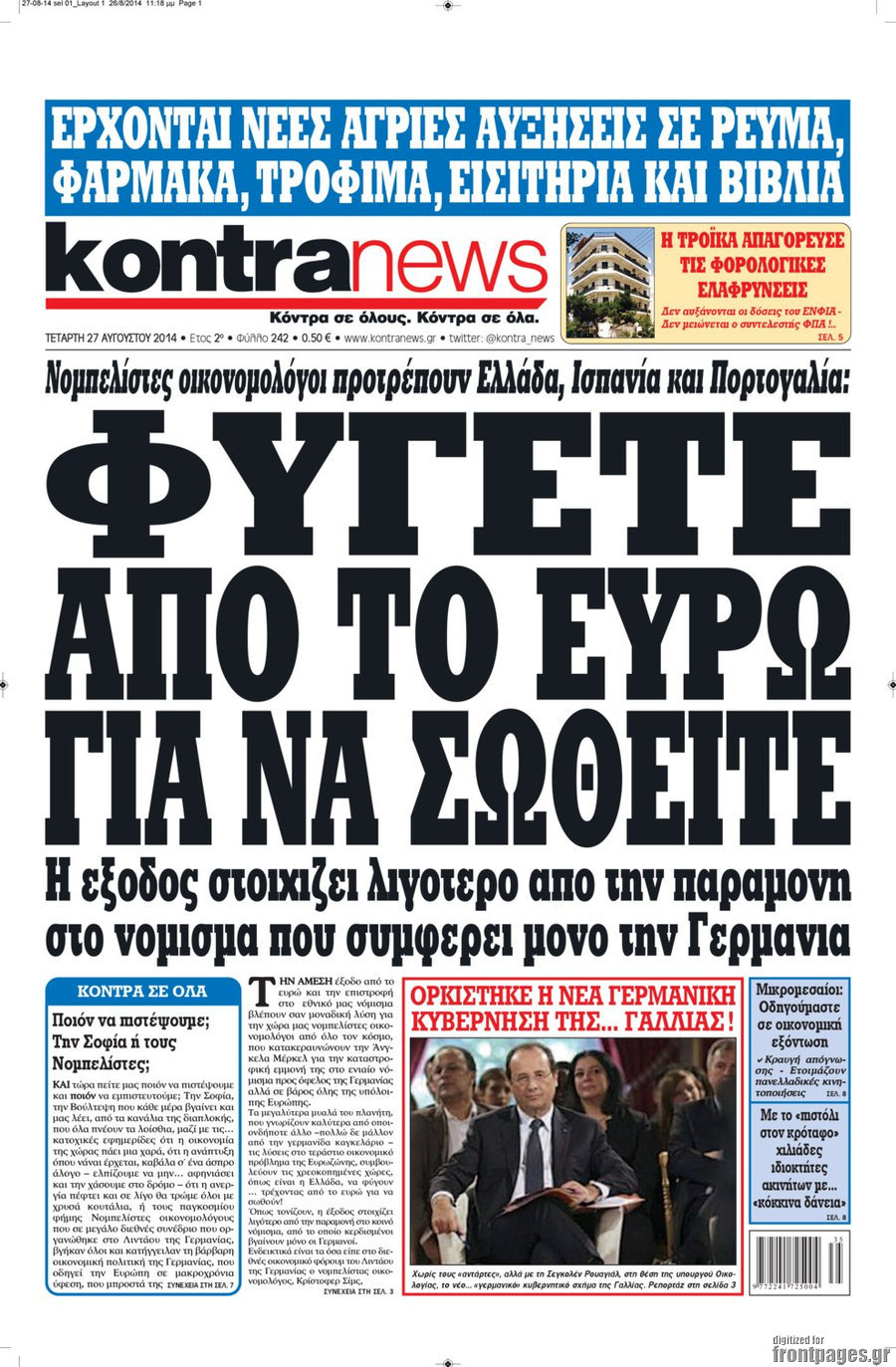 Τα πρωτοσέλιδα των εφημερίδων (Τετάρτη 27/8)